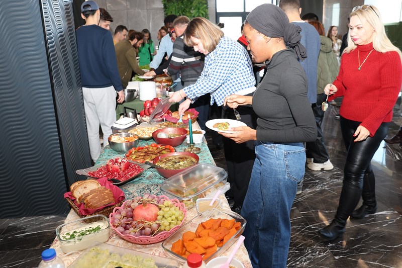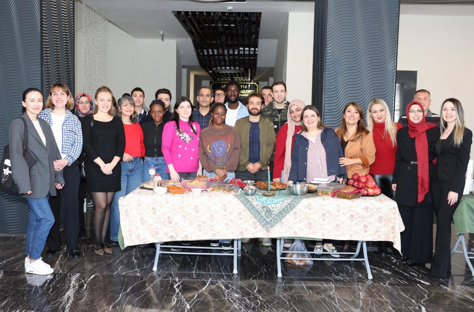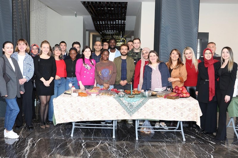 Üniversitemiz ALKÜ TÖMER bünyesinde 20.12.2024 tarihinde Yerli Malı Haftası ile birlikte İRAN Şeb-i Yelda Günü kutlandı. ALKÜ TÖMER müdür yardımcıları Öğr. Gör. Anıl CAMKIRAN ve Öğr. Gör. Elif DEMİR tarafından organize edilen etkinliğe ALKÜ TÖMER yönetimi ve öğretim elemanları katılım sağladı. Türk kültürünü tanıtmayı ve uluslararası öğrencileri kaynaştırmayı amaçlayan etkinliğe yabancı öğrenciler kendi mutfaklarını tanıtan yiyeceklerle katıldılar. Etkinlikte aynı zamanda Türk mutfağına ait yemekler de yer aldı. Ayrıca Akdeniz yöresine ait mutfak gereçleri sergilendi. Uluslararası öğrencilerin Türk kültürüyle etkileşimini de sağlayan etkinlik, farklı coğrafyalardan gelen öğrencilerimizin bir araya gelerek birbirlerini daha yakından tanımalarına, kendi kültürlerini paylaşmalarına ve Türk kültürüyle kaynaşmaları adına önemli bir organizasyon oldu.